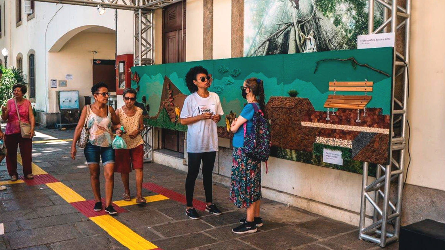 Permite que pessoas cegas ou com baixa visão compreendam o espaço expositivo por meio do toque.