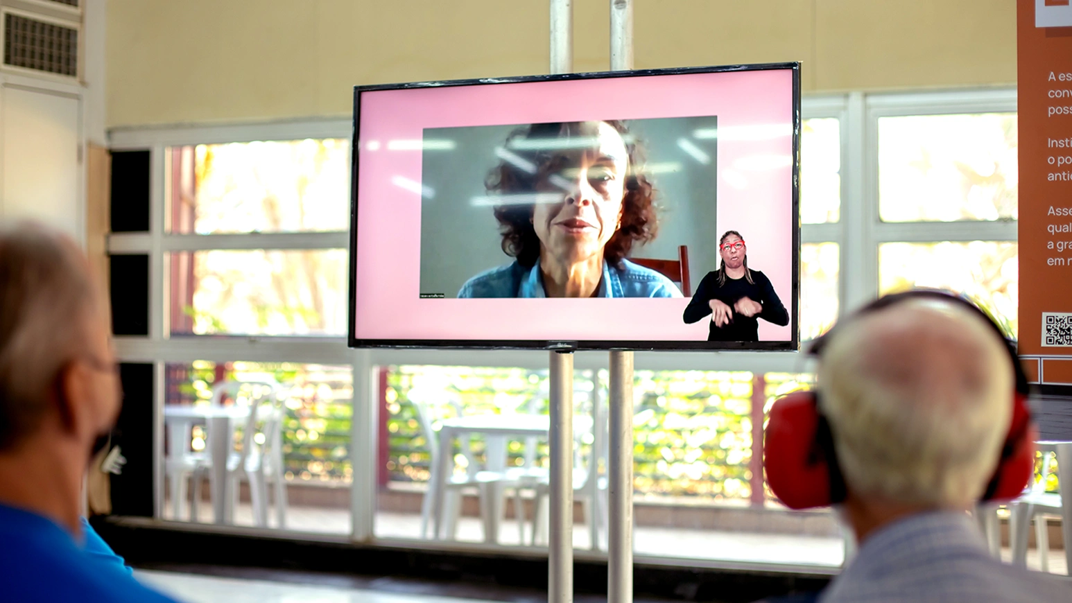 Tradução do conteúdo falado para Libras, apresentada por um intérprete em um canto da tela.