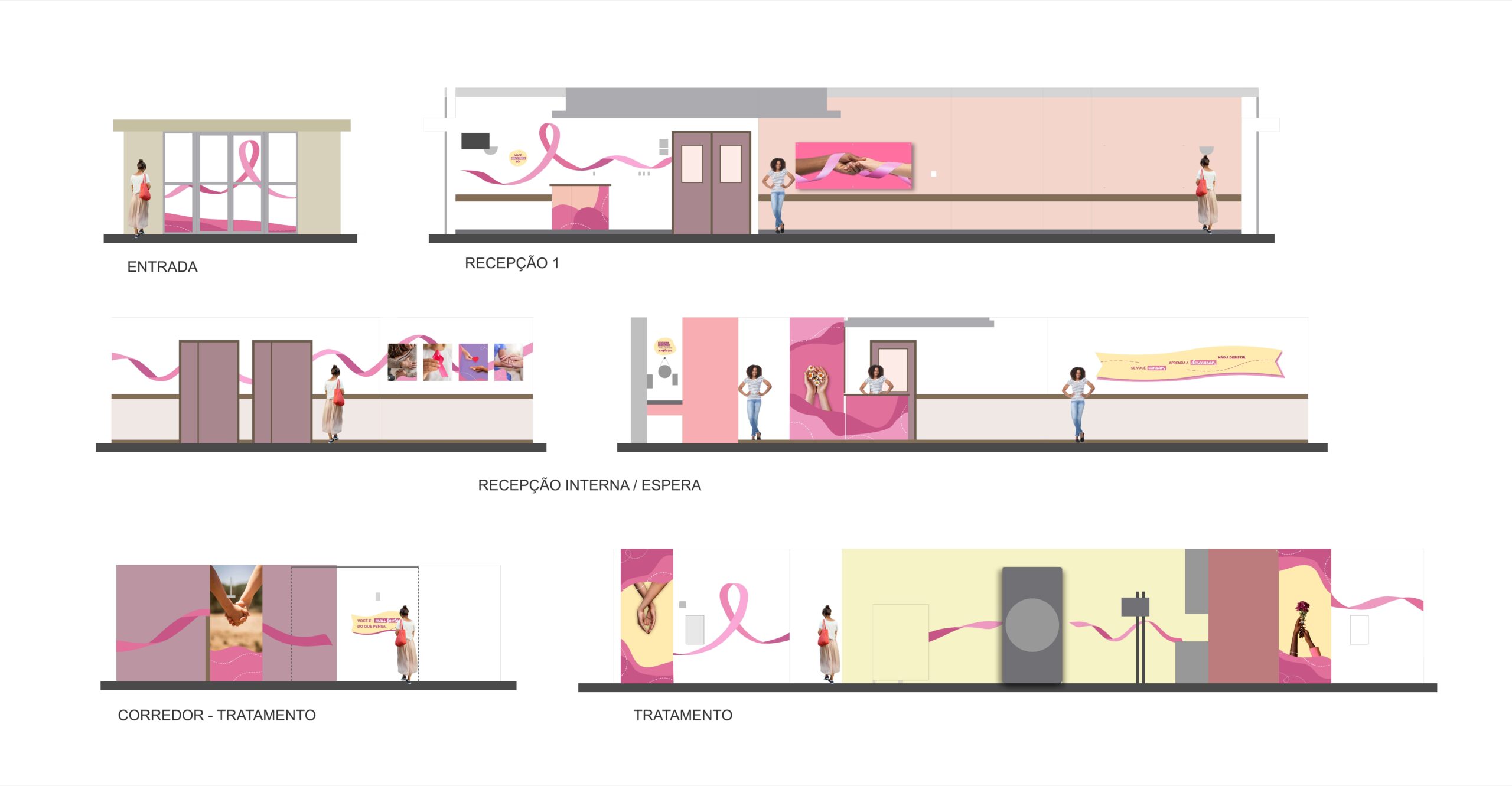 Humanization project for the Radiotherapy sector of the Cancer Hospital III – INCA, of the National Cancer Institute. A place where women undergoing cancer treatment spend long periods. Research was carried out to create the concept with women who are part of the target audience, with the aim of creating a welcoming space that induces feelings such as overcoming, resilience and hope.